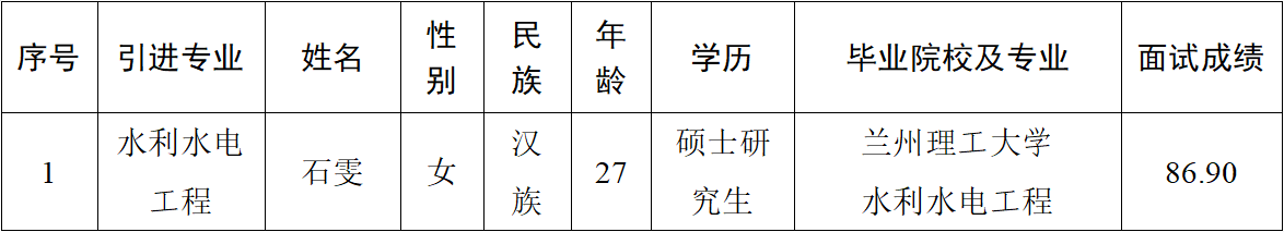 2023-07-20根据《2023年平凉市引进急需紧缺人才公告》,市产投集团对2023年拟引进的1名应届生完成了资格审查、面试、考察、体检等工作程序。现予以公示,接受社会各界监督。如发现在德、能、勤、绩、廉等方面有影响引进的问题,可通过电话、手机短信、网络、来信和面谈等